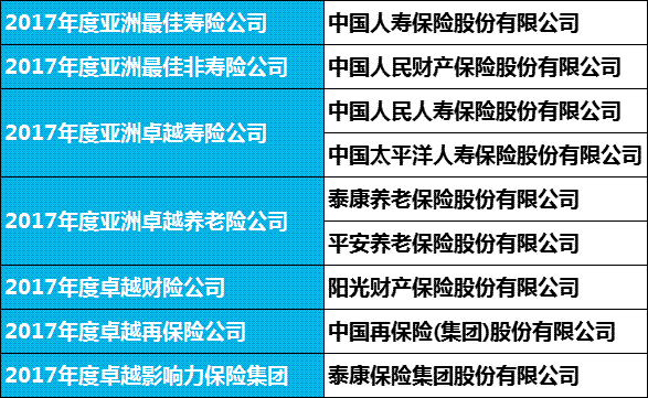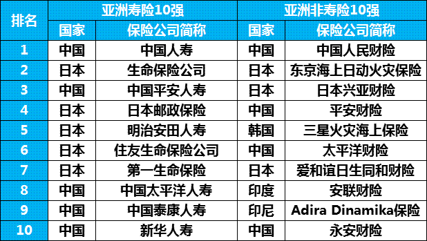中国人寿和人保财险分别夺得亚洲寿险、非寿险公司第一位。