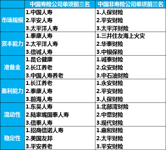 进入亚洲非寿险前30名中国保险公司共有9家,分别是:人保财险(第1,蝉联第一)、平安财险(第4)、太平洋财险(第6)、永安财险(第10,较去年上升8名)、华泰财险(第11)、中国大地财险(第12)、中国人寿财险(第17)、台湾产物保险(台湾,第19)、新光产物保险(台湾,第30)。